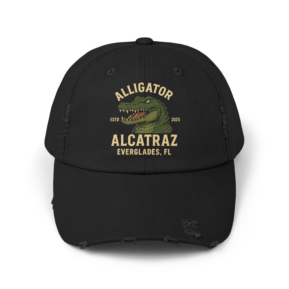 Alligator Alcatraz Everglades Fl 2025 Distressed Cap – Printed Vintage Hat