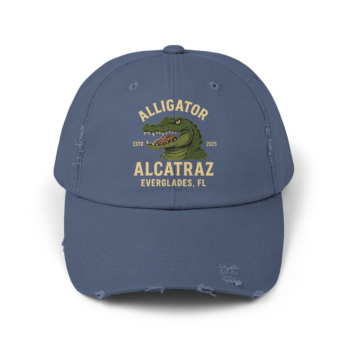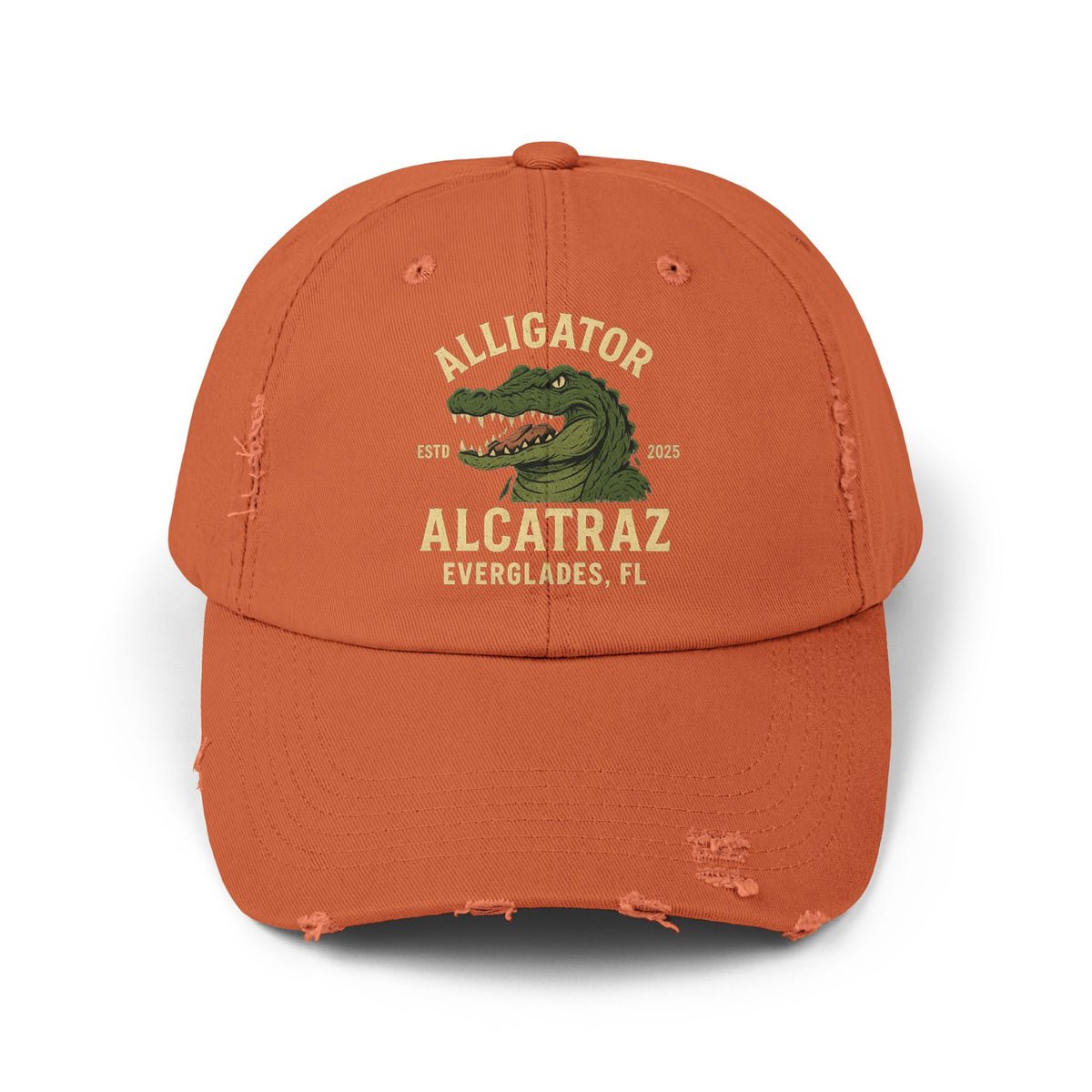 Add Alligator Alcatraz Everglades Fl 2025 Distressed Cap – Printed Vintage Hat to your cart today and enjoy Free US Shipping.