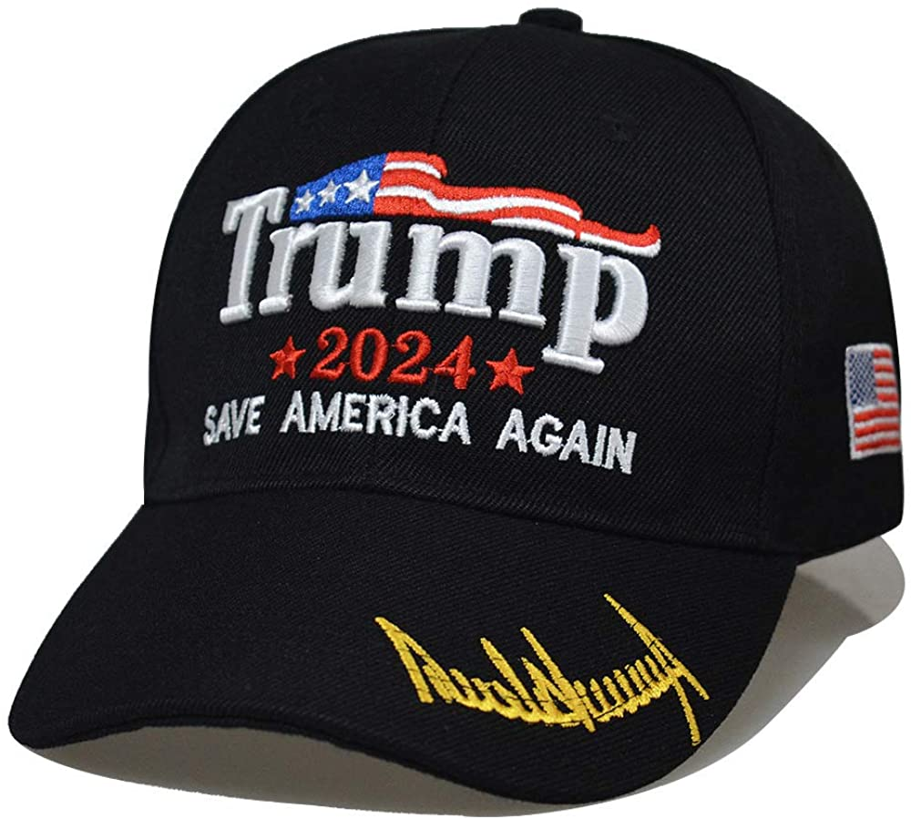 Add Black Trump Hat 2024 Save America Again Baseball Hat Signature On Bill to your cart today and enjoy Free US Shipping.