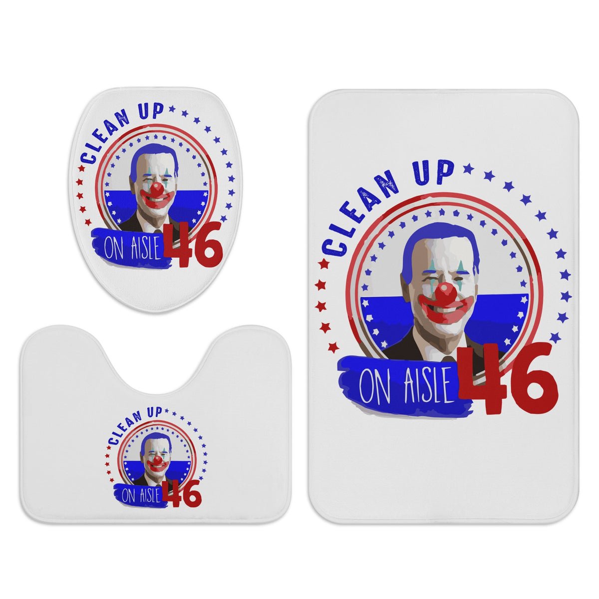 The detail on this Clean Up On Aisle 46 Joe Biden Clown Bath Room Toilet Set is incredible. It arrived so fast with the free shipping. A great addition to my 2026 collection!