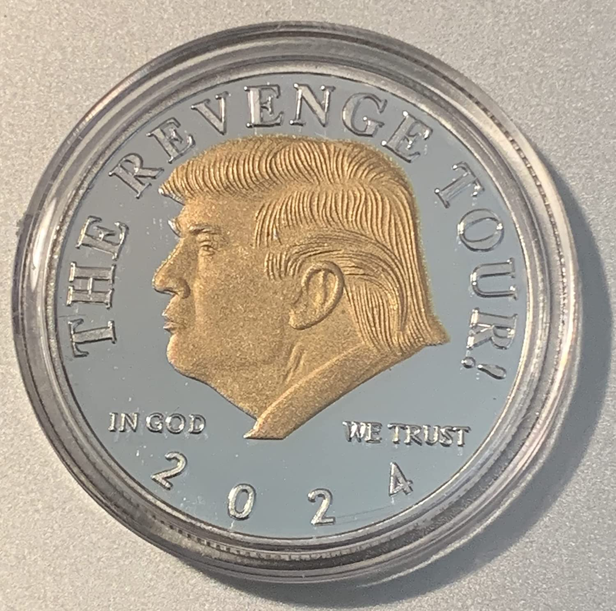 Beautifully made Trump Coin Silver / Gold The Revenge Tour 2024. I’ve bought several items from Maga Offers and they never disappoint.